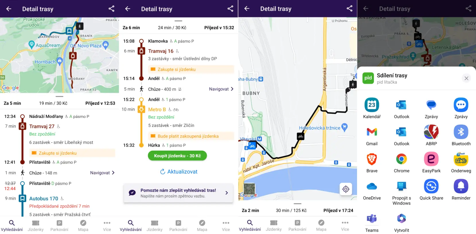 Vyhledávač nejenže vyhledá trasu pro cestování veřejnou dopravou, autem nebo na kole, ale nově nabídne i kombinace všech těchto druhů dopravy v rámci jedné trasy. Například chcete-li jet autem, zaparkovat a dále pak pokračovat MHD, aplikace vám přesně takovou trasu najde. Dokonce vás navede na parkoviště, kde své auto můžete zaparkovat.