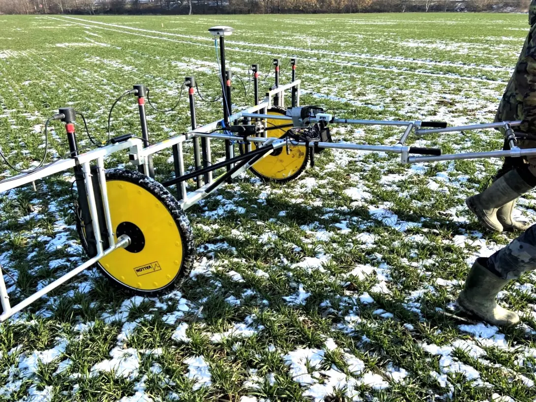 3) Měřící skupina prozkoumá vytyčenou plochu pomocí magnetometru. Získaná terénní data následně podléhají zpracování do formátu map vertikálního gradientu magnetického pole země. Tyto mapy obdrží skupina pyrotechniků pro následné ověření.
