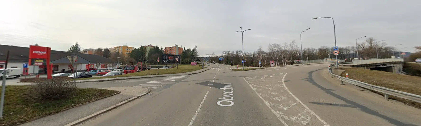 světelná křižovatka na Obvodové a Přístavní u Penny marketu