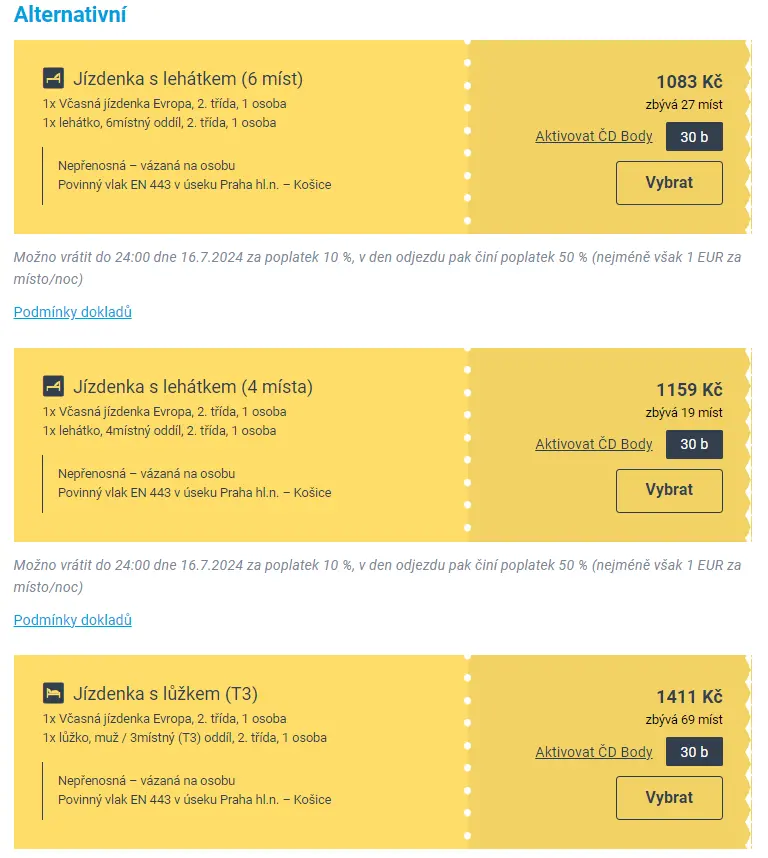 Nákup jízdenek na noční vlaky je v aplikaci Můj vlak a v e-shopu Českých drah nově mnohem přehlednější. České dráhy upravily v online prodejních kanálech zobrazení jednotlivých variant jízdenek, které si cestující mohou do lůžkových a lehátkových vlaků zakoupit. Celý proces nákupu jízdních dokladů je tak jednodušší a rychlejší.