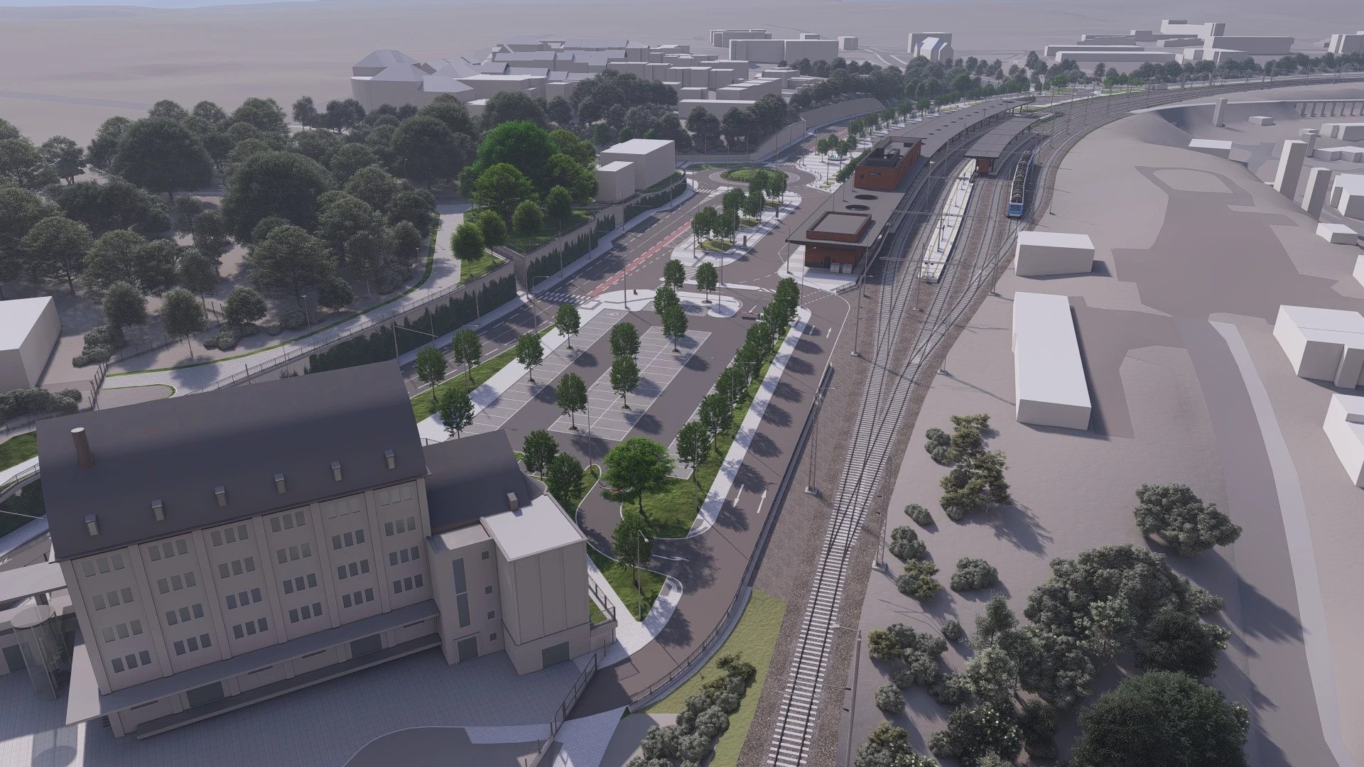 V místě stávající nádražní budovy vznikne okružní křižovatka. Pro novostavbu, která ji nahradí, se využije prostor po zrušených kolejích. V přízemí se bude nacházet společná příjezdová a odjezdová hala, první patro bude tvořit čekárna pro přestupující cestující.