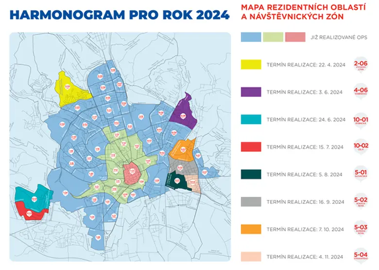 Harmonogram zavádění rezidentního parkování v Brně letos počítá s osmi oblastmi. Zavedena byla jedna – Vychodilova. Soběšická a Rybnická se přidají v červnu. O měsíc později se do systému zapojí i Nový Lískovec s oblastí Oblá. Brněnští radní to dnes schválili změnou příslušného nařízení.
