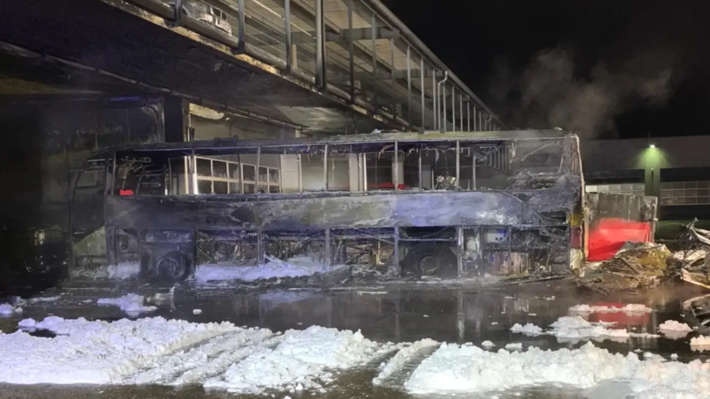 Vozidla byla v garáži autobusové společnosti, uvedl v neděli ráno policejní mluvčí. Hmotná škoda byla vyčíslena na nejméně jeden milion eur. Při požáru nebyl nikdo zraněn a bylo odvoláno varování, které bylo mezitím vydáno kvůli silnému rozptylu kouřových plynů. Policie má podezření, že příčinou požáru byla technická závada na jednom z autobusů.