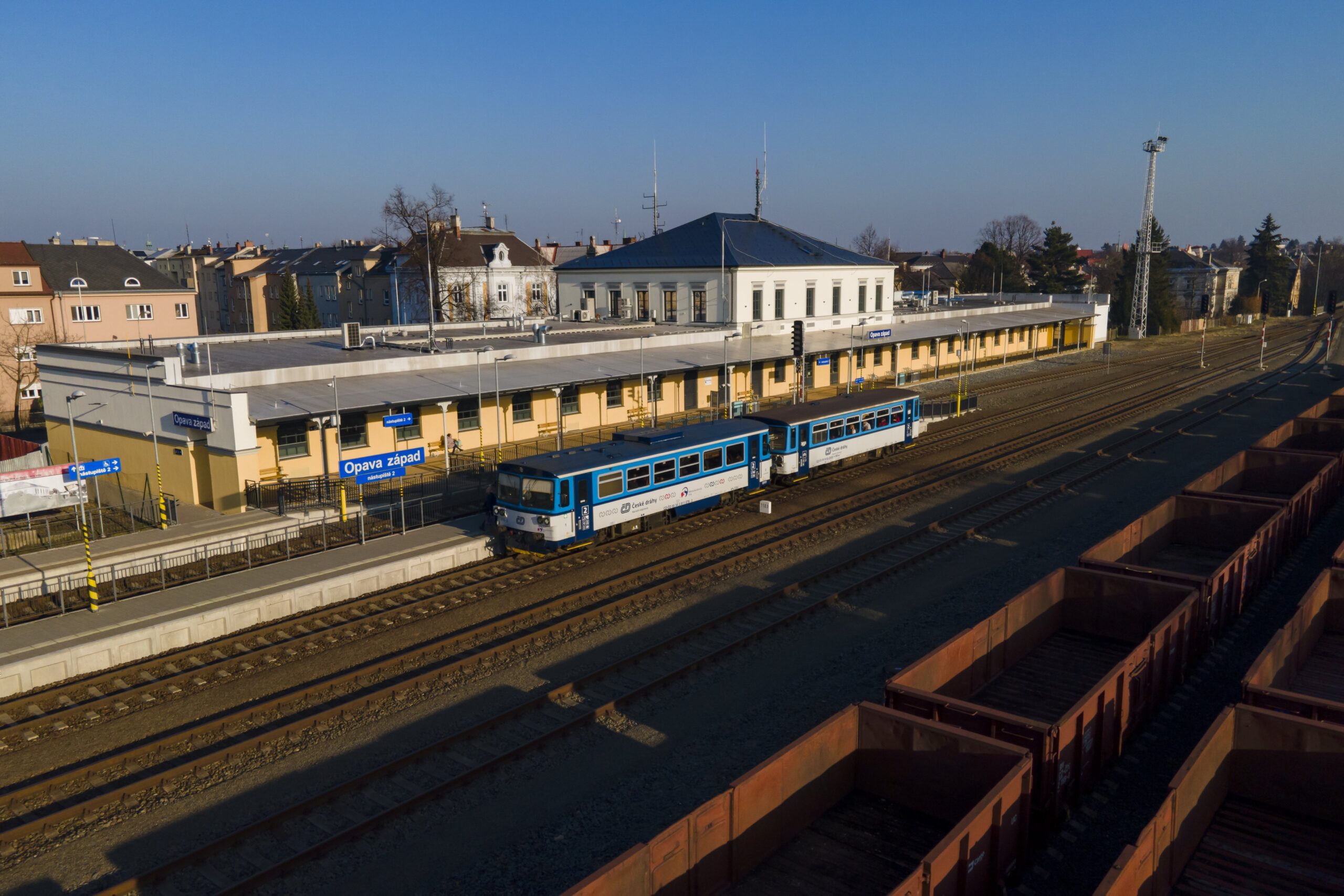 Dnešním dnem se otevřela kompletně zrekonstruovaná budova nádraží Opava západ. Nový vestibul, pokladna i sociální zázemí nabízí cestujícím komfortní a bezbariérové prostředí. Do objektu se současně přesouvají desítky opavských dopravních policistů. Celkové investiční náklady dosáhly 104 milionů korun. Práce zrealizovala společnost Metrostav DIZ.
