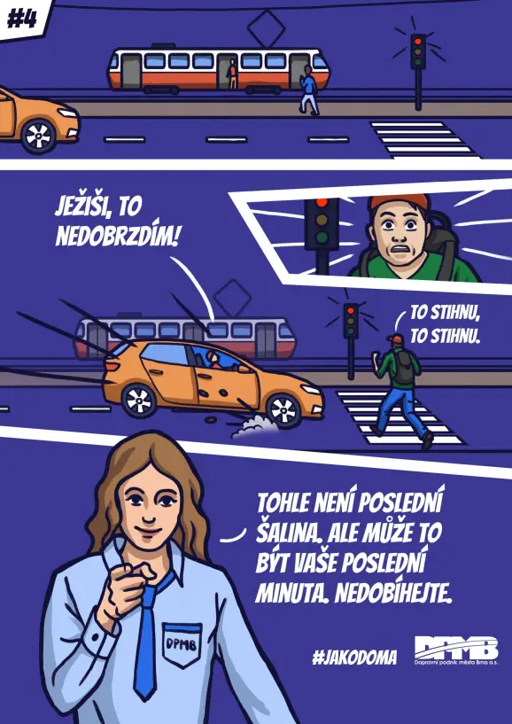 Dopravní podnik města Brna spustil novou kampaň #jakodoma, která upozorňuje na nevhodné chování v prostředcích MHD. Situace, ke kterým denně dochází, zpracoval formou komiksů, které jsou k vidění ve vozech. Slibuje si od toho, že nad svým chováním budou cestující více přemýšlet.