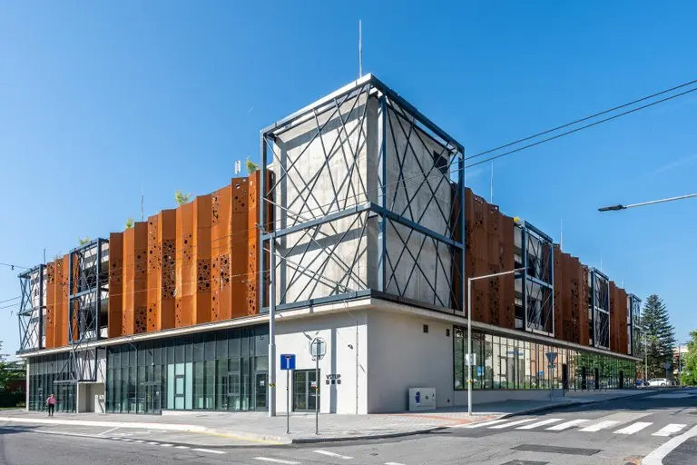 Parkovací dům poskytne rovněž možnost parkování řidičům, jejichž parkování záhy omezí výstavba dalších městských objektů, např. koncertního sálu a dalších na ulici 28. října. Nový parkovací objekt nabídne 465 parkovacích míst, z nichž je 27 stání určeno zdravotně handicapovaným. Na šesti místech je možné dobíjet elektromobily a neschází ani úschovny jízdních kol pro 54 těchto dopravních prostředků. Předchozí parkovací kapacita v místě byla díky výstavbě parkovacího domu navýšena na čtyřnásobek.