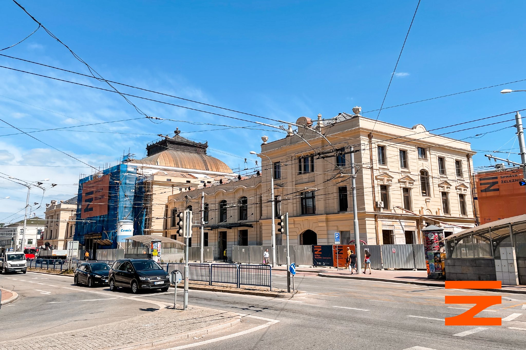Stavební práce na výpravní budově začaly na přelomu května a června 2020, odhad dokončení byl zpočátku prosinec 2022. Po odkrytí původních konstrukcí byl zjištěn velmi špatný stav některých částí objektu, například všech stávajících železobetonových nosných konstrukcí stropů, některých zdí, bylo nutné zbourat celý severní přístavek a změnit způsob odizolování objektu.