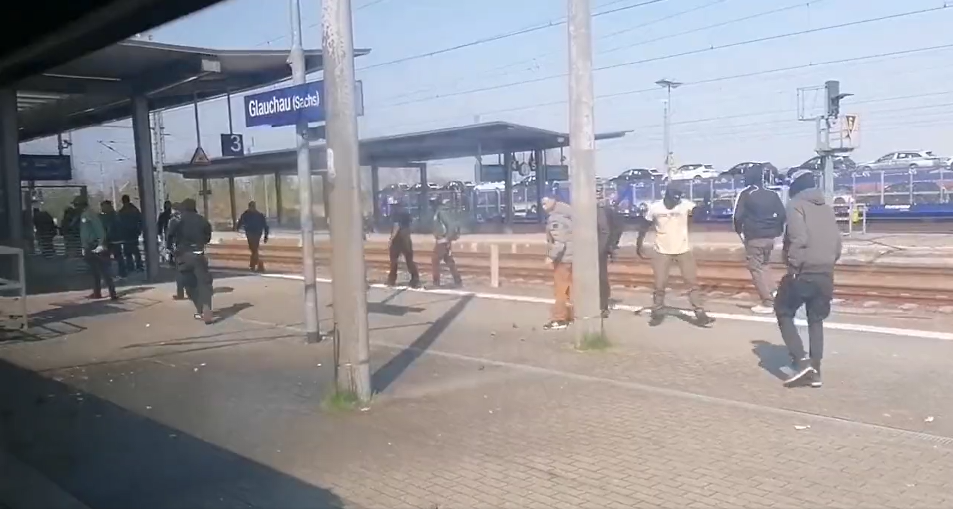 Útočník v Glauchau ukázal Hitlerův pozdrav, další měl opasek s hákovým křížem, uvedl mluvčí. Podle federální policie byla stanice uzavřena na dobrých 40 minut.