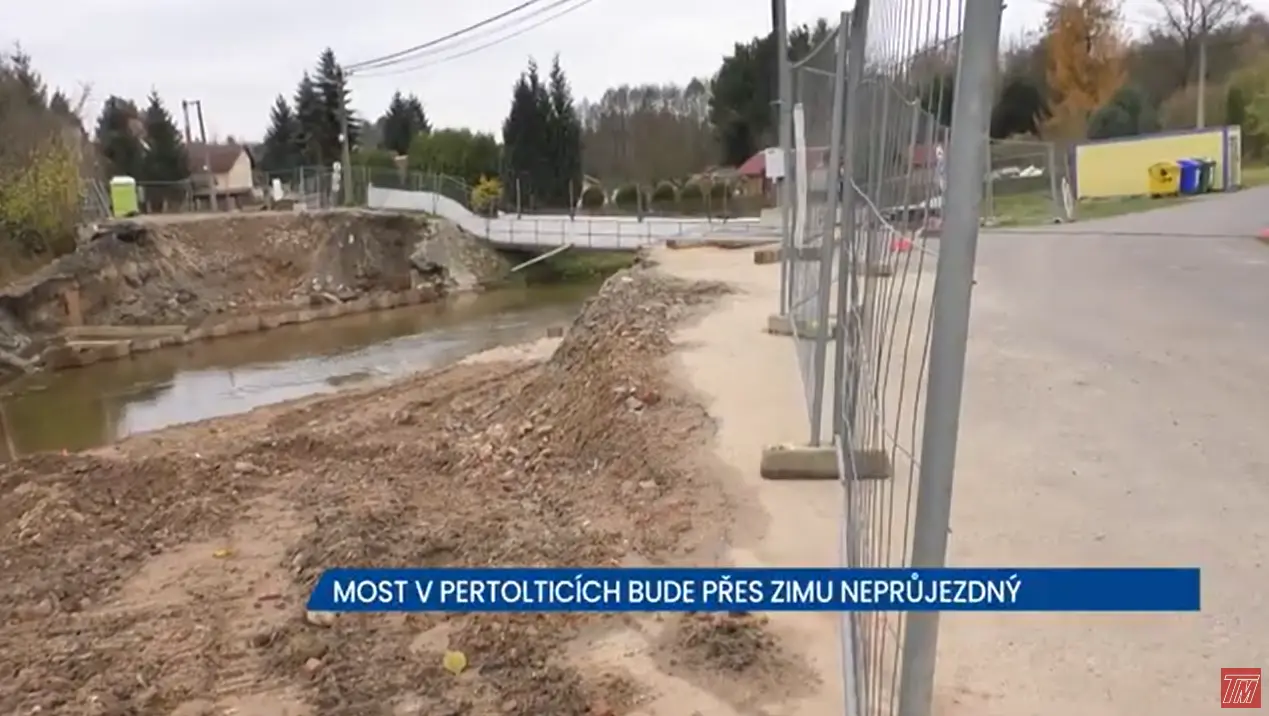 Opravy silnic a mostů v Libereckém kraji se s blížící zimou chýlí k závěru. To ale není případ mostu přes Panenský potok v Pertolticích pod Ralskem na Českolipsku. Tam se bohužel stavební práce nepodaří dotáhnout do konce. Most tak zůstává přes zimu neprůjezdný.