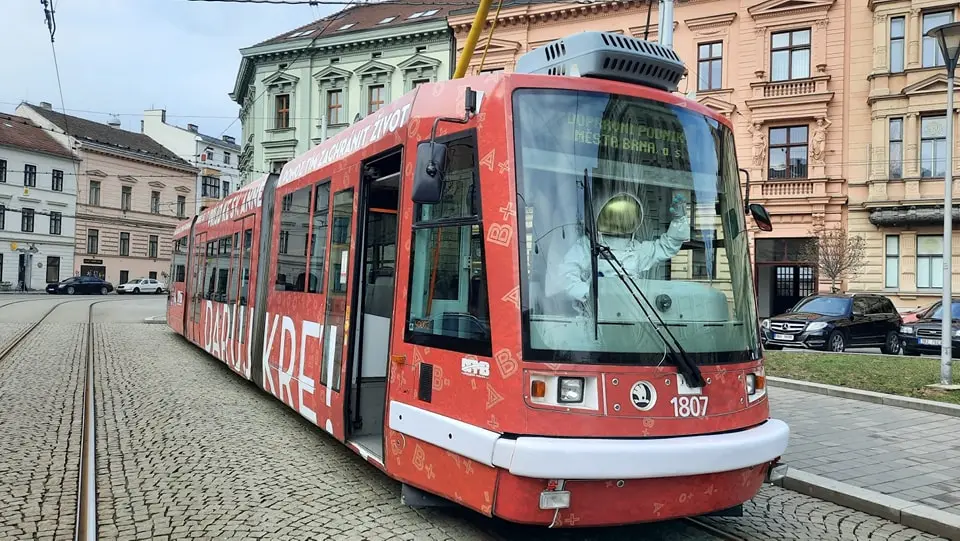 Fakultní nemocnice u svaté Anny v Brně svou tramvají vyzývá veřejnost k darování krve. Vůz, který dnes zástupci nemocnice a brněnského dopravního podniku slavnostně pokřtili, zaujme poutavým rudým designem a hecujícími slogany. Odběrové centrum nemocnice loni zaznamenalo rekordní počet dárců – krev nebo plazmu si nechalo odebrat téměř 11 tisíc lidí, mezi nimi i zaměstnanci Dopravního podniku města Brna.