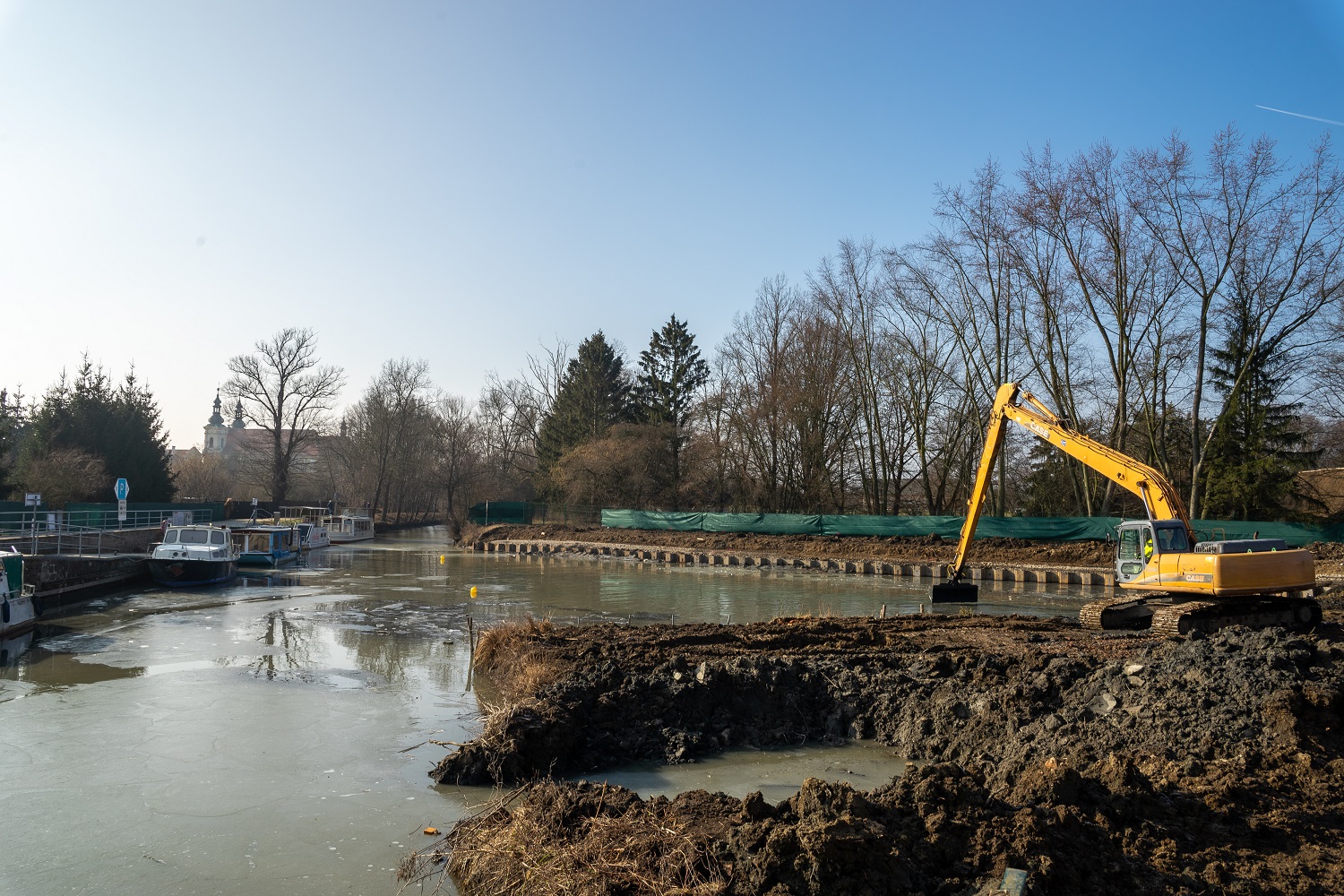 Důležitou součástí stavby je obnovení těsnící hráze. „Současný břeh laguny je tvořen protipovodňovou hrází, proto je v rámci výstavby přístaviště nutné důkladně provést těsnící stěnu,“ říká Jan Pospíšil, stavbyvedoucí společnosti Inženýrské a dopravní stavby Olomouc, a.s. a dodává: „Investor nezapomíná ani na náhradní výsadbu, která bude provedena kvůli pokácení několika místních stromů.“